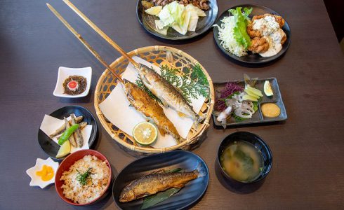 この日の会には、地元新聞社やコミュニティFM、女性団体の代表、友人、知人ら16人が出席。甲斐さんが、シイタケ、豆腐、ネギ、海苔をベースに、北浦産のイワシと山芋入りのあげみ、北方産山芋のととろ、延岡産の空飛ぶ新玉ネギをそれぞれトッピングした3種類の八杯汁を詩作し、参加者に試食してもらいました。