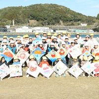 小学生以下の子どもとその保護者を対象にした「手づくりたこあげ大会」が1月18日、延岡市の西階運動公園補助グラウンドで行われ、約70組が世界に一つだけの手作りたこを空高く揚げて楽しみました。