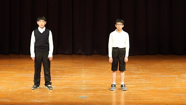 講演会ではまず、今年度で閉講となる坪谷小6年の水野大珠(みずの・たいじゅ)さん、山口創大(やまぐち・そうた)さんの2人が、「ふるさとの 尾鈴の山の かなしさよ 秋もかすみの たなびきて居り」などの牧水の歌を朗詠・斉唱したのに続き、地元・日向市の西村賢市長が「今回の山中様の受賞はまるで運命の様に感じている。山中様は短歌を始められた当初、牧水先生が創設された短歌結社『創作』にご加入されていたとのこと。牧水の情熱の源流に触れてこられた山中様が、この30回の節目に受賞されたことは郷土の喜びもひとしおです」とあいさつしました。