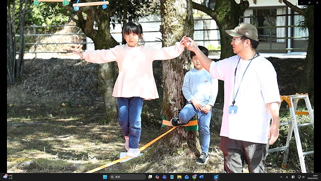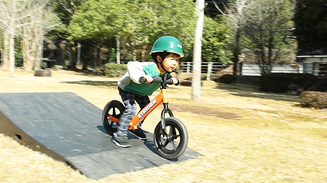 隣接する北川体育館裏では、二点間に張り渡した専用ラインの上で楽しむスラックラインを、子どもたちが体験しやすいようにアレンジした体験施設や、ペダルのないキックバイクの体験会もあり、幼児や小学生らが真剣な表情でチャレンジしていました。