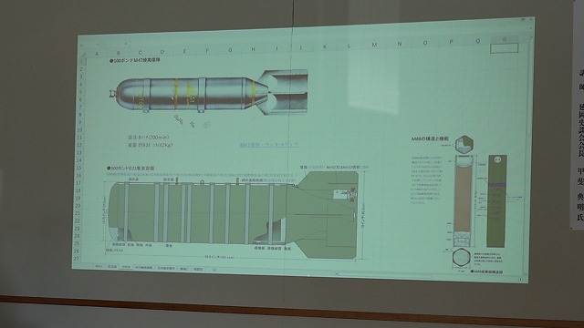 第2部の研究成果発表では、甲斐秀人(かい・ひでと)さんが、昭和20年6月29日の延岡大空襲の際、大貫町や野地町でも米軍の焼夷弾によるかなりの被害があったことが調査で判明したことから、落とされた焼夷弾の構造や当時の米軍に爆撃機にまつわる事実について言及しました。