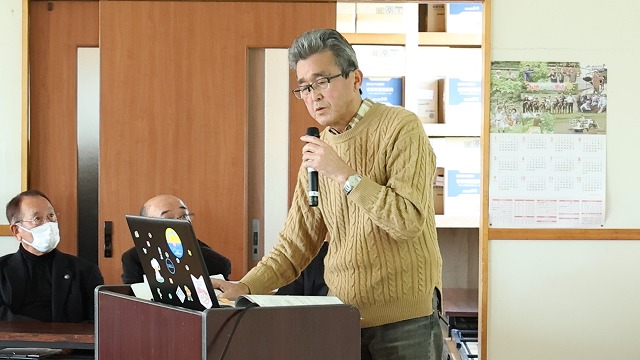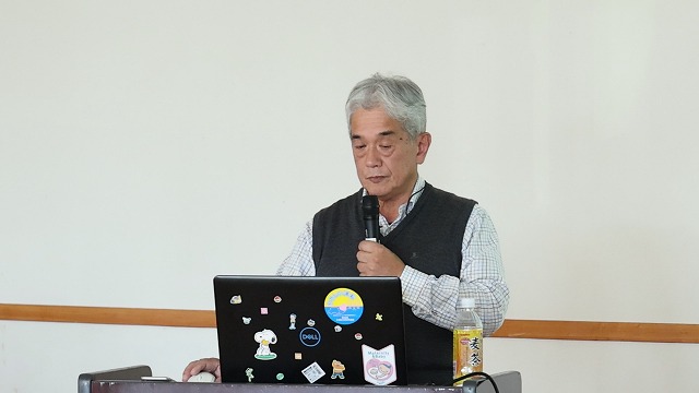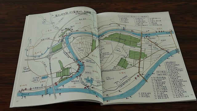 高田裕満(たかだ・ひろみつ)さんは、五ヶ瀬川水系と南方用水路の歴史などを、創刊号に掲載した手作りの地図や国土交通省の資料などを基に解説しました。高浦哲(たかうら・さとし)さんは、大貫町、小峰町、野地町を中心に調査・研究した南方地区に伝わる方言について説明し、特に全国的に例のない方言としてクワガタムシを意味する〝かんげん〟について紹介し、「このかんげんは南方独特の方言と言っていい」などと話しました。
