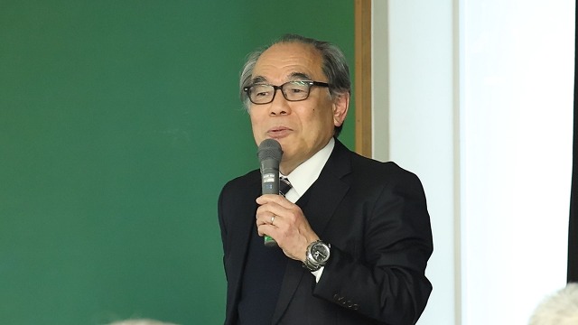 延岡史談会(甲斐典明会長、84人)の創立90周年を記念した第4回講演会が3月22日、延岡市社会教育センターで開かれ、甲斐典明(かい・のりあき)会長が「南限の地、境目の地 延岡」の演題で講演しました。