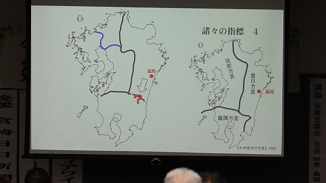 また、近世的な兵農分離の南限、譜代藩の南限、清酒文化の南限などの「南限の地」を示すいくつかの指標を紹介した上で、最後に「3万年前の旧石器時代から時代ごとに県内を代表する史跡や遺跡をピックアップしたら、延岡には全ての時代を象徴するようなものが揃っている。こういうものを認識し、延岡市民としてのシビックプライドをキチンと意識する上でベースになるのが歴史ではないかと言える」などと強調しました。