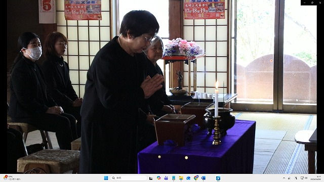 本堂で今山大師の野中玄雄住職と健雄副住職による法要が営まれました。物故者の名前が読み上げられたあと、参列者が献香し物故者を供養しました。